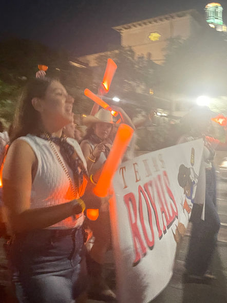 Another method we may utilize is to have pep rallies and team send-offs for select away games. This week, there was a parade and rally sponsored by Texas Exes to build excitement for the Longhorn vs OU game. This was a great opportunity to witness what these events could look like and see which elements worked and which would need to be tweaked. One thing we noticed worked very well was the inclusion of campus spirit groups. Including these groups increased attendance and excitement. It is also a win-win for the organizations because they used it as an opportunity to advertise their clubs. Some modifications we would make if we pursue this solution would be to have more pre-rally coverage and to block off Guadalupe Street both ways while the parade is underway.